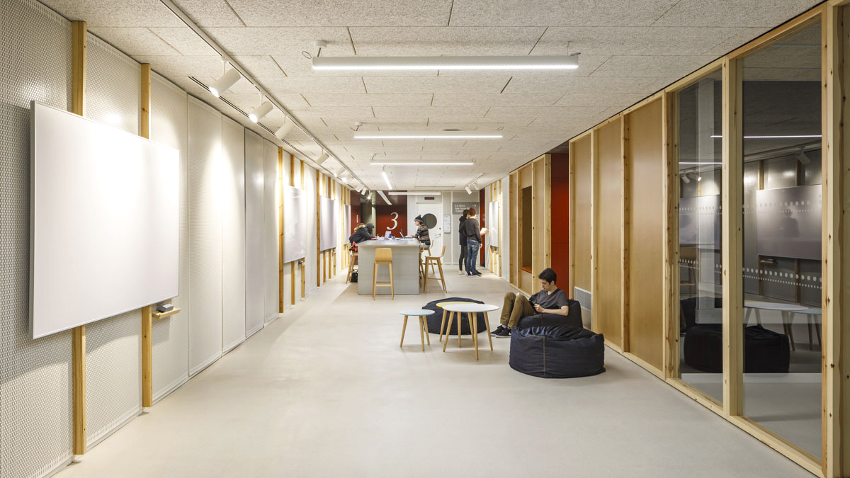 This project is the first intervention promoted by Pompeu Fabra University to adapt its spaces to the new educational model. The Project raises a radical transformation of the workshop area of the Poble Nou Campus through a partial and surgical rehabilitation of the building. The proposal is articulated through six new spaces for relationship and interaction that transform the original regular grid structure by reducing the corridors length by 58%. Each of these spaces incorporates new specific uses and is endowed with an identifiable and recognizable identity.